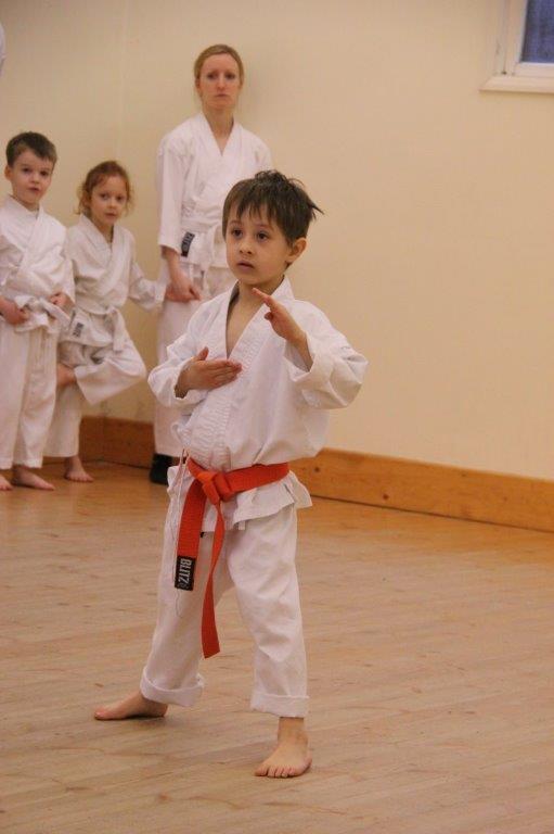 Successfully grading from white belt (10th Kyu) to orange belt (9th Kyu) were;